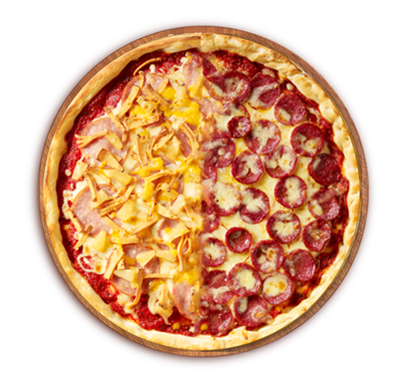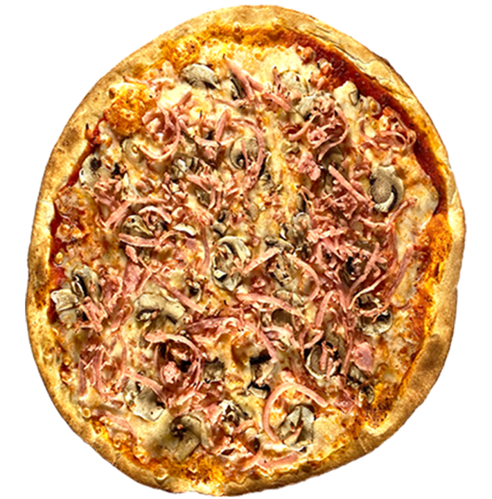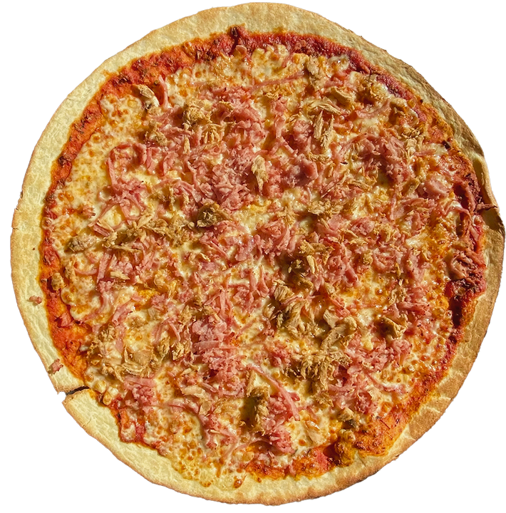 Jugosa pizza gracias a la mezcla de la mozzarella pura y el queso cheddar, con jamon york que le aporta firmeza y sabor.