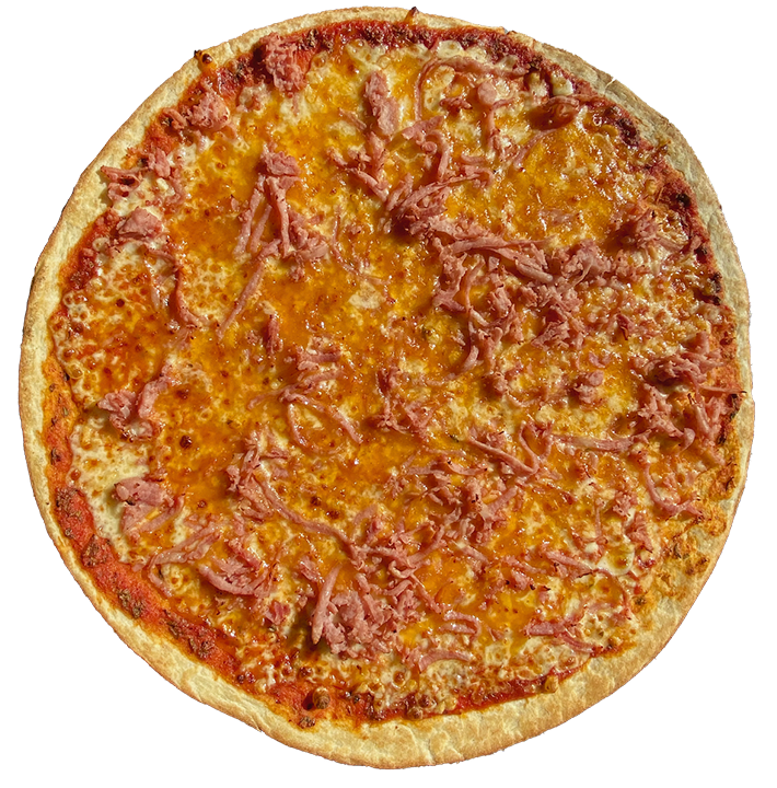 Pizza de Jamon York en tiras. Combinación sencilla para saborear un buen jamón y la mozzarella 100% pura.