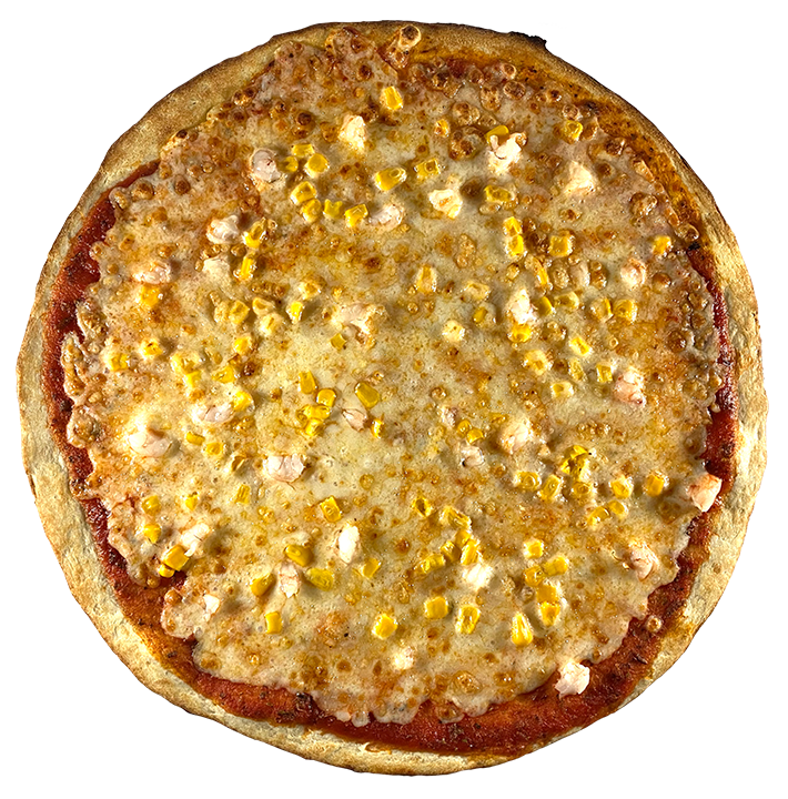 Ingr.: Tomate, Mozzarella pura, Gambas, Maíz, Oregano.