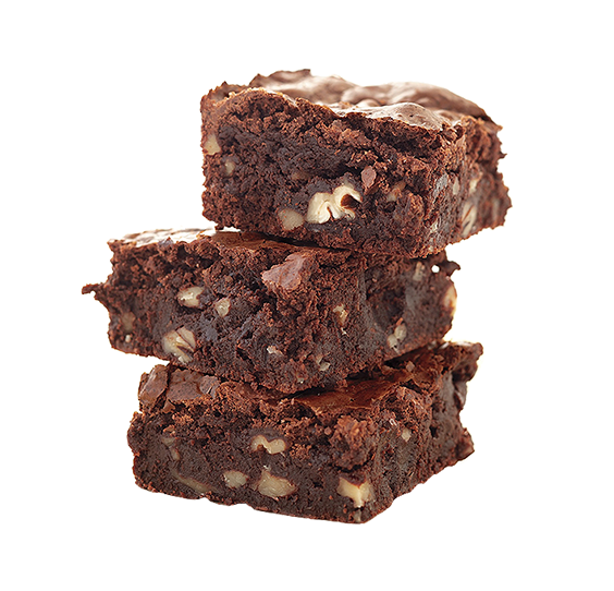 Brownie de chocolate y nueces con sirope de chocolate y azúcar glass.