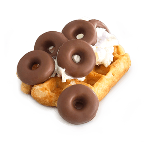 Gofre extragrande horneado con sirope a elegir, fideos de azúcar de colores y azúcar glass.