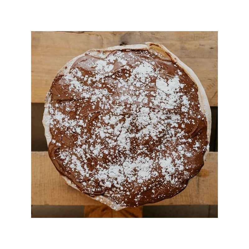 Masa de 32cm con Nutella, fideos de azúcar de colores y azúcar glass